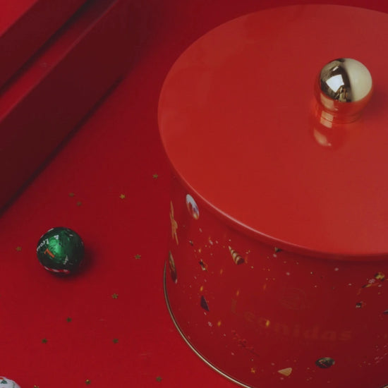 Uma bomboneira com 72 bolinhas recheadas para oferecer ou ter em casa, neste Natal, repleta de puro chocolate belga Leonidas.