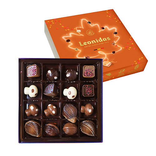 Caixa Zanzibar com um sortido de 16 bombons de outono.