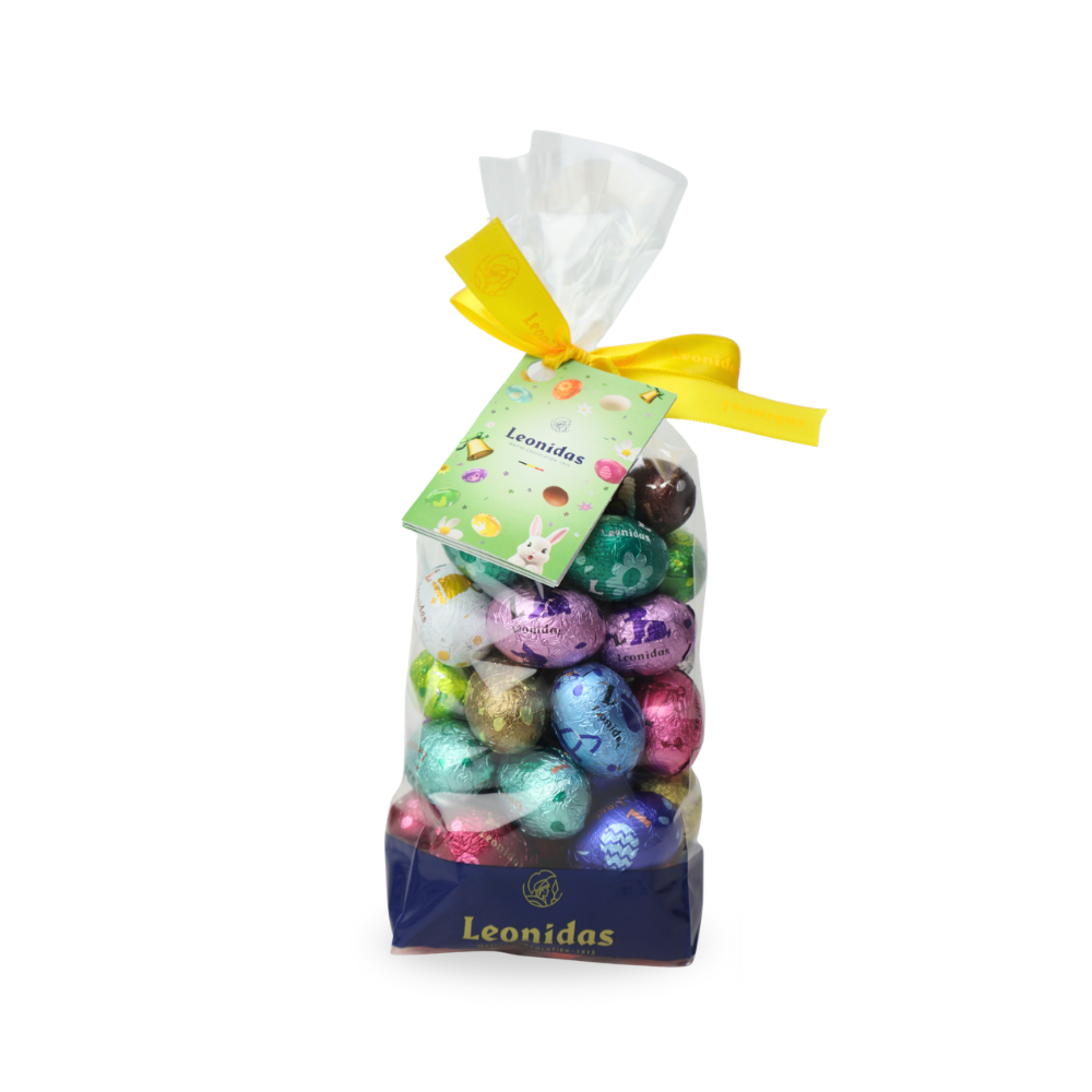 O Sortido de Ovos de Páscoa é feito respeitando as tradições, com manteiga de cacau 100% pura, sem óleo de palma e recheado com crocantes e saborosos pequenos ovos de Páscoa de Leonidas. Uma gama de sabores para o ajudar a descobrir a nossa seleção de Páscoa. Chocolate negro, leite e branco, praliné, caramelo, natas …