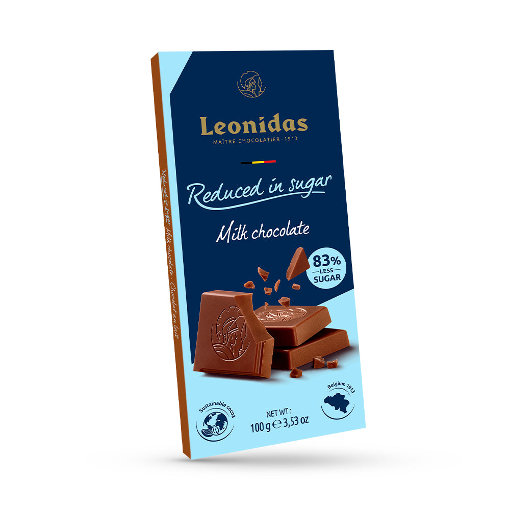 Experimente esta deliciosa tablete de chocolate de leite. Aprecie o sabor do chocolate Leonidas, agora com menos 83% de açúcar. Perfeito para qualquer ocasião!
